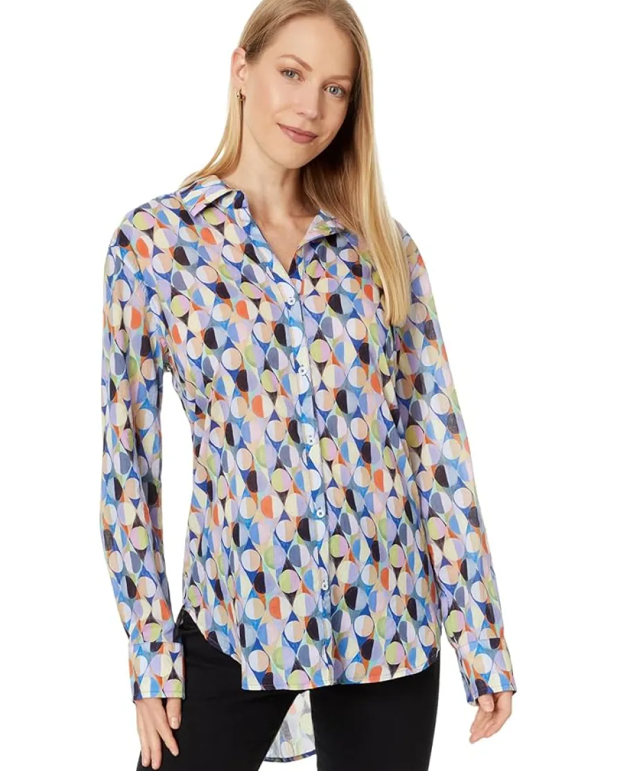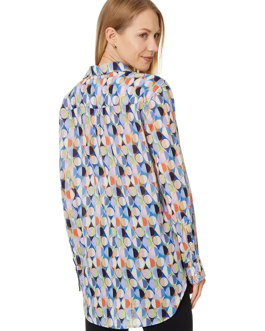 - Embrace the rumpled texture of this striking NIC+ZOE™ Social Circles Boyfriend Shirt. It features a collared neckline, long sleeves with buttoned cuffs, and straight back yoke fostering a relaxed fit silhouette.
