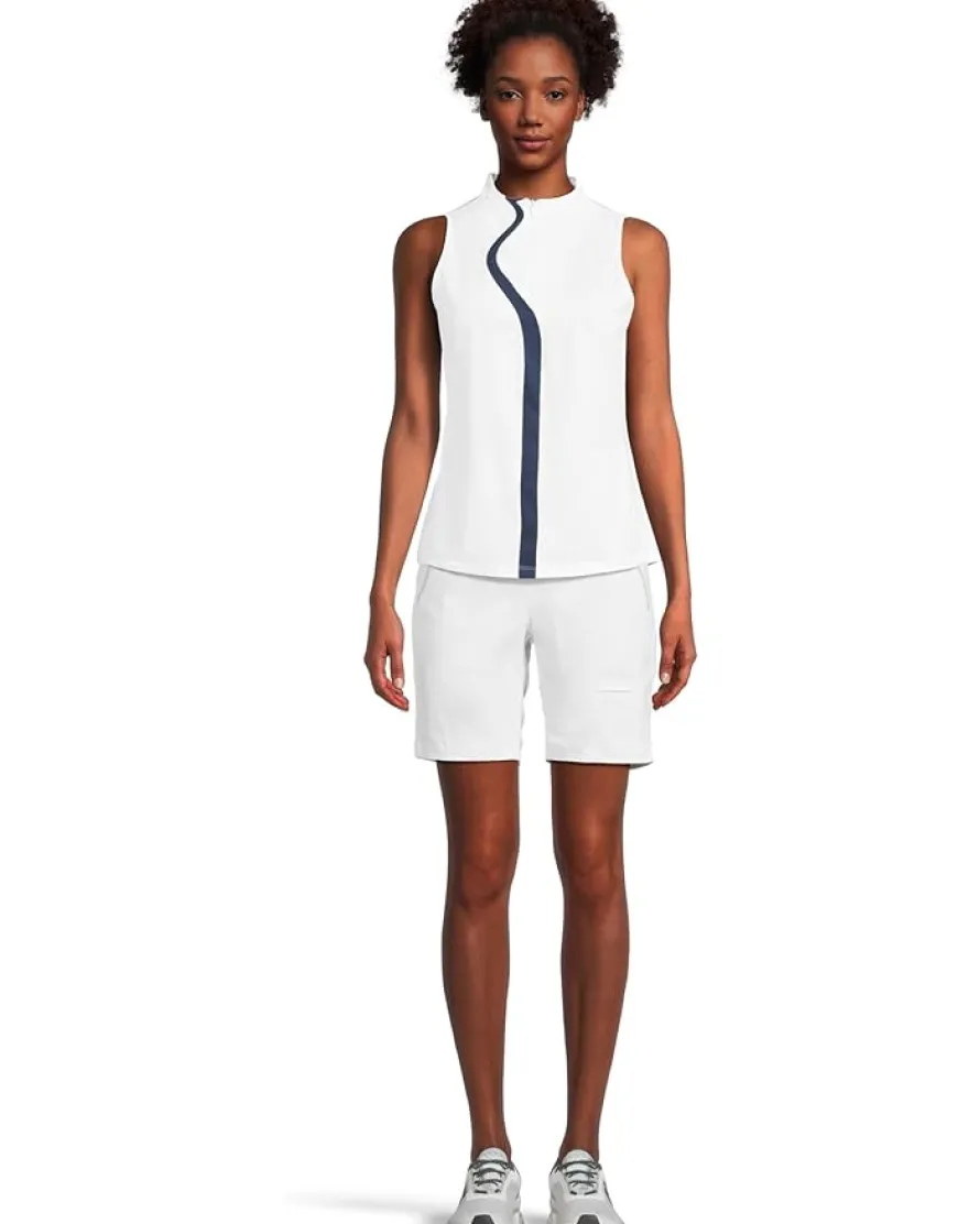 - Flaunt those shoulders wearing the Jamie Sadock® Solid Sleeveless Top. Made from Cooltrex performance, lightweight, breathable performance fabric with stretch this top features traditional polo self collar with zippered placket, sleeveless style, modern, tasteful design, classic fit, and straight hem. Classic silhouettes infused with distinct details that set you a cut above others. Look good feel good play good!