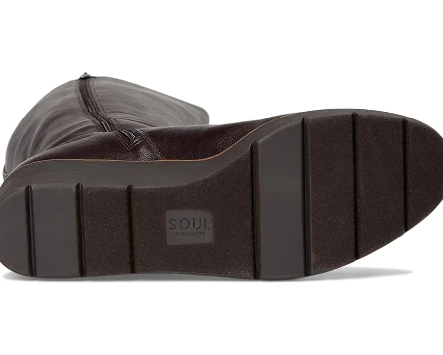 - Step out in lasting comfort in the Naturalizer® Soul Adrian Knee High Boot. Crafted from a textile and synthetic upper, these boots offer an inside zipper closure, round toe silhouette, exterior gore panel, textile lining, leather insole, and a pull tab in back for easy entry.