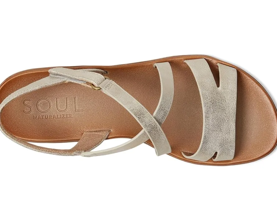 - The Naturalizer® SOUL Naturalizer Shenna sandals are strappy sandals you need now. Don’t wait to add these to your lineup. These comfortable sandals with endless versatility are made of a synthetic upper with recycled foam linings and a round toe shape. The ContourFIT technology features a sculpted EVA insole, soft foam lining, arch support with memory foam, and a lightweight and flexible outsole. Their adjustable hook-and-loop closure ensures a secure fit.