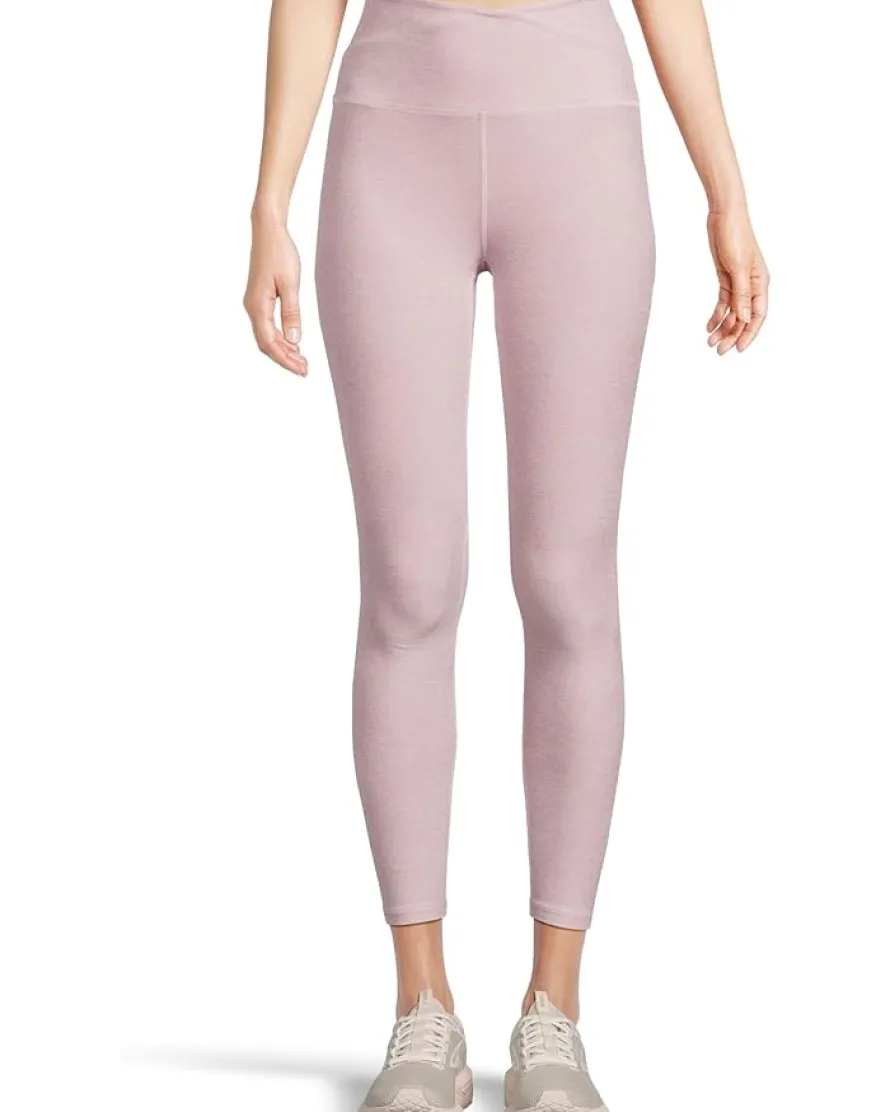 - The Beyond Yoga® Spacedye At Your Leisure High Waisted Midi Leggings are the perfect curve-enhancing yoga leggings that your friends keep talking about. These active leggings come with an overlap waistband, made from incredibly soft Spacedye fabric. It sits at the natural waist. This pair of high-waisted midi leggings is a fan favorite for the way it shows off and flatters all body shapes, and is versatile enough for working out, vegging out, or travel too. Pair it with the matching bralette to complete the look.