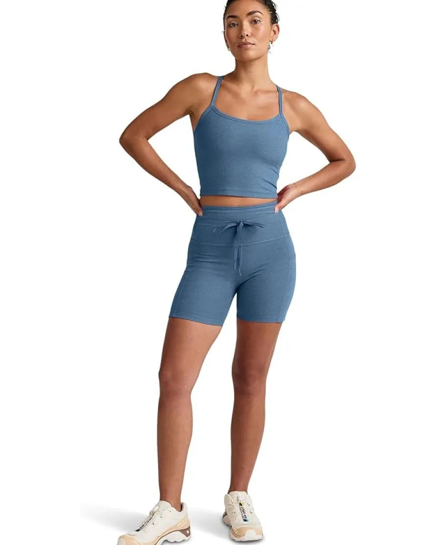 - The Beyond Yoga® Spacedye Go Pocket 5″ Shorts are made for days on the move, whether you’re running errands or walking with a friend. We added the same high-waisted and drawstring detail, plus pockets for essentials as our beloved Go Pocket Midi Legging, but with a 5″ inseam to keep you cool on warm days. The high-waisted shorts sit on the natural waist, feature an adjustable drawcord, and two side pockets.