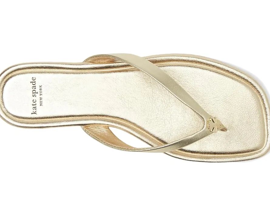 - Take every step forward with lasting comfort wearing Kate Spade New York® Spade Flower Flip Flop Sandal. The slip-on style sandals feature a glossy patent leather upper, leather lining, and an open-toe design with a toe-post closure detailed with a spade flower motif.