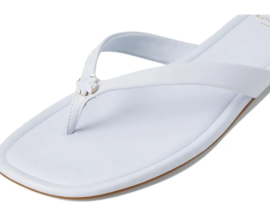 - The sleek slip-on style silhouette makes the Kate Spade New York® Spade Flower Smooth Leather Flip Flop, perfect for everyday wear. The open rounded-squared toe flats feature a leather upper, leather lining, and a leather insole. The toe-post closure makes it easy to wear or remove, while the signature Spade Flower motif adds an iconic touch.