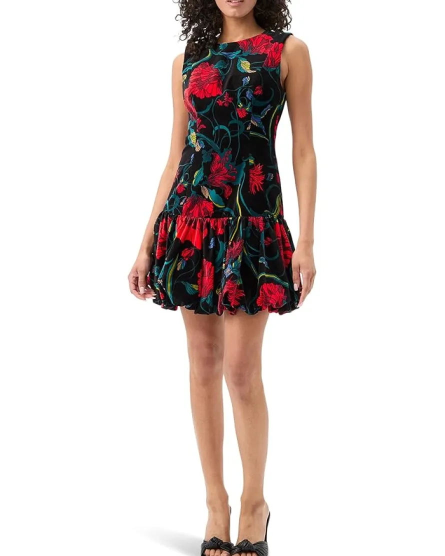 - The Trina Turk™ Splendored Dress is a printed velvet mini dress with a drop waist and bubble hem. Styled with an allover floral print, this sleeveless dress features a drop waist, a high neckline, and a bubble hem. Its zippered back closure ensures easy on and off. Made from soft velvet fabric, this floral mini dress is a great choice for date nights and parties.
