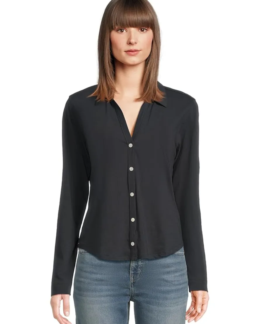 - Effortless polish meets everyday chic, the Lilla P™ Split Collar Button-Down is your new style essential. Designed with a sleek split collar neckline, this timeless piece adds just the right amount of modern edge to a classic silhouette. The long sleeves offer versatile wear, easily rolled up for a laid-back vibe or worn full-length for a more refined look. Featuring a button-front closure, it blends structure with comfort, while the pull-on design ensures an easy fit without compromising on sophistication.