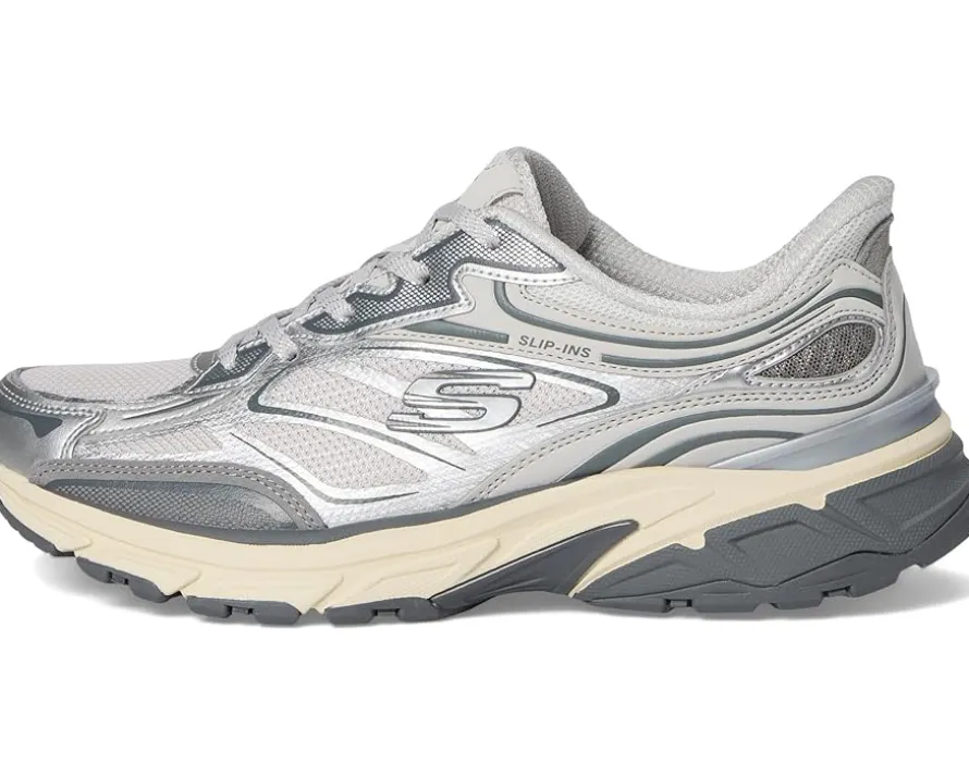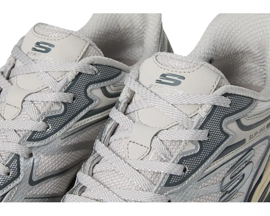 - Step out in sporty style and effortless comfort with the SKECHERS® Stamina Sport Hands Free Slip-Ins shoes. Designed with an exclusive Heel Pillow™ that holds your foot securely in place, these sports shoes feature a mesh upper with leather and synthetic overlays and adjustable laces. They are crafted with a cushioned Skechers Air-Cooled Memory Foam® insole for all-day comfort. The Skechers Hands Free Slip-ins® design ensures an easy fit. These casual joggers feature a Skechers® logo detail and serve as a great choice for your everyday runs and outdoor rides.