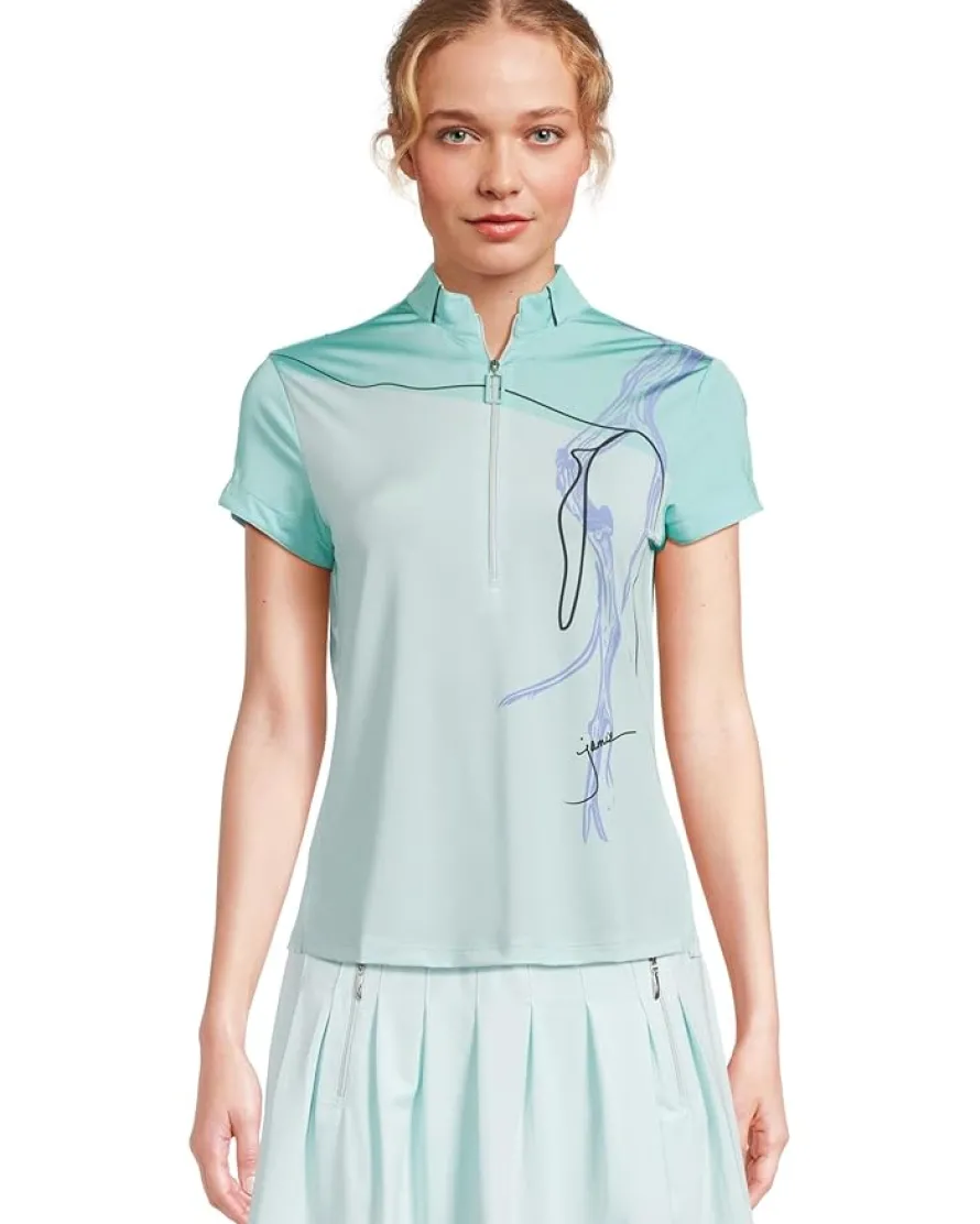 - The Jamie Sadock® Strike Print Short Sleeve Top is a literal work of art designed, refined, and produced with the intention of being nothing like anything else on the market. Made using Cooltrex® Performance fabric,this top features collared neckline, short sleeves, classic silhouettes infused with distinct details that set you a cut above others. Look Good Feel Good Play Good.