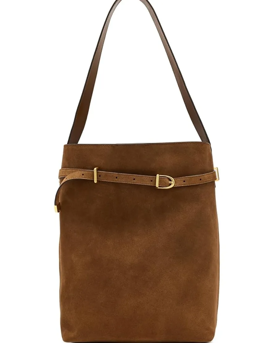 - The Madewell® Suede Belted Essentials Bucket Tote is the ultimate companion for your everyday adventures. Crafted from high-quality leather material, this chic tote features a stylish suede belt detail and a convenient magnetic closure. The adjustable shoulder strap allows for comfortable carrying on the go, making it a must-have accessory for any fashionista.