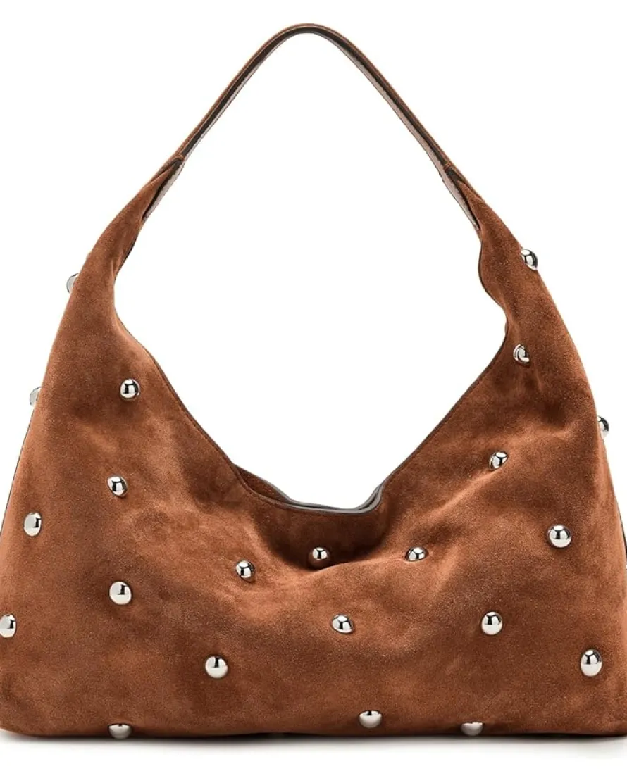 - Embrace laid-back luxury carrying the Madewell® Suede Slouchy Shoulder Bag in Stud. Crafted from buttery suede, this spacious shoulder bag offers a relaxed silhouette that effortlessly complements any outfit. Adorned with subtle metallic studs that add a touch of modern edge without overpowering the classic design.