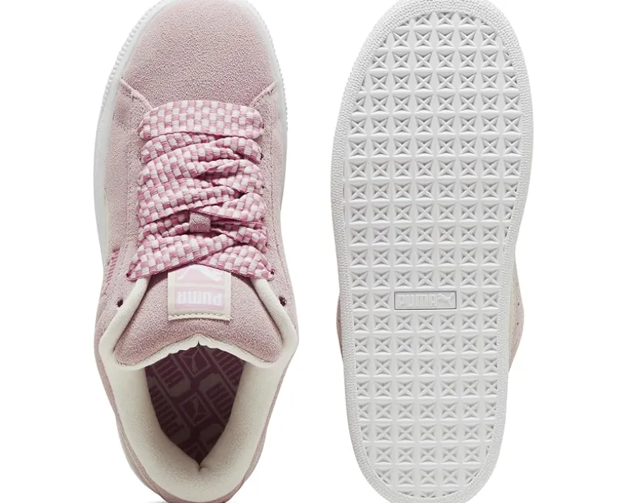 - Give your classic footwear collection a trendy update with the PUMA® Suede Xl Sneakers, crafted in a modern street inspired silhouette with contrasting lace-up closure and formstip pattern. The sneakers come with a leather upper, suede tongue with mesh binding, leather lining, and cushioned rubber insole. The PUMA® branding on quarter panel and FOT Mesh lining Mesh sockliner with repeat screen printed PUMA® branding add both style and authenticity.