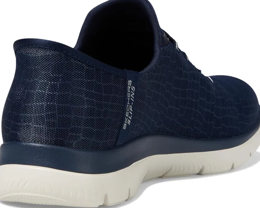 - Add a little glam to your step wearing the SKECHERS® Summits-Classy Night Hands Free Slip-Ins. Designed with an exclusive Heel Pillow, these shoes feature a snake-patterned sparkle mesh upper with fixed stretch laces that make them a comfortable footwear choice. The cushioned Skechers Air-Cooled Memory Foam® comfort insole cushions each of your steps. Machine washable, these lace-up sneakers are perfect to pair with different styles and outfits.