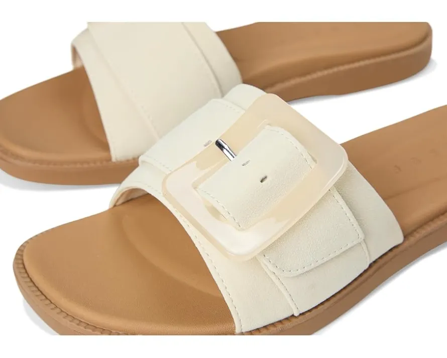 - Say yes to lunch on the patio, you’ve got your sandals picked already. The Reef® Sunny Emma features a chic, fixed buckle detail on a soft and supple vegan leather strap. Crafted from rubber upper, nylon lining, and EVA insole, this pair of sandals features open round toe, topped with compression molded EVA footbed and finished with added insole comfort for cushioned support with every step.