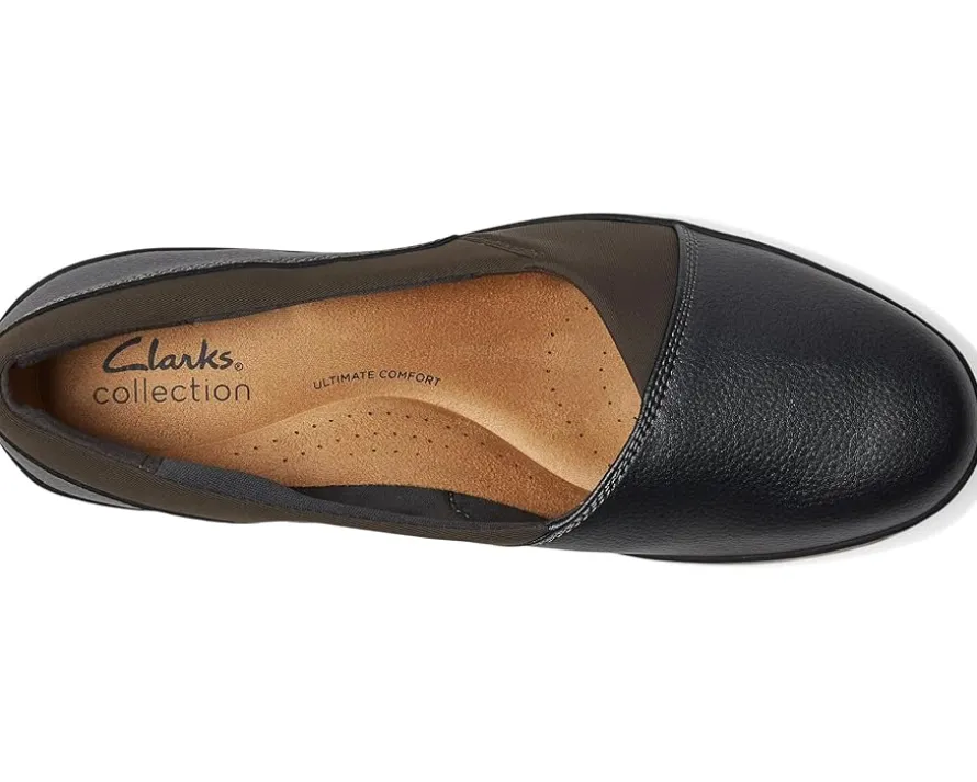 - Perfect for all events, the Clarks™ Suttyn Walk Shoes add both style and comfort to your feet. These slip-on style shoes feature a leather upper with a plain toe shape, mesh lining, and a cushioned leather insole. The wedge heel detail adds style to the look.