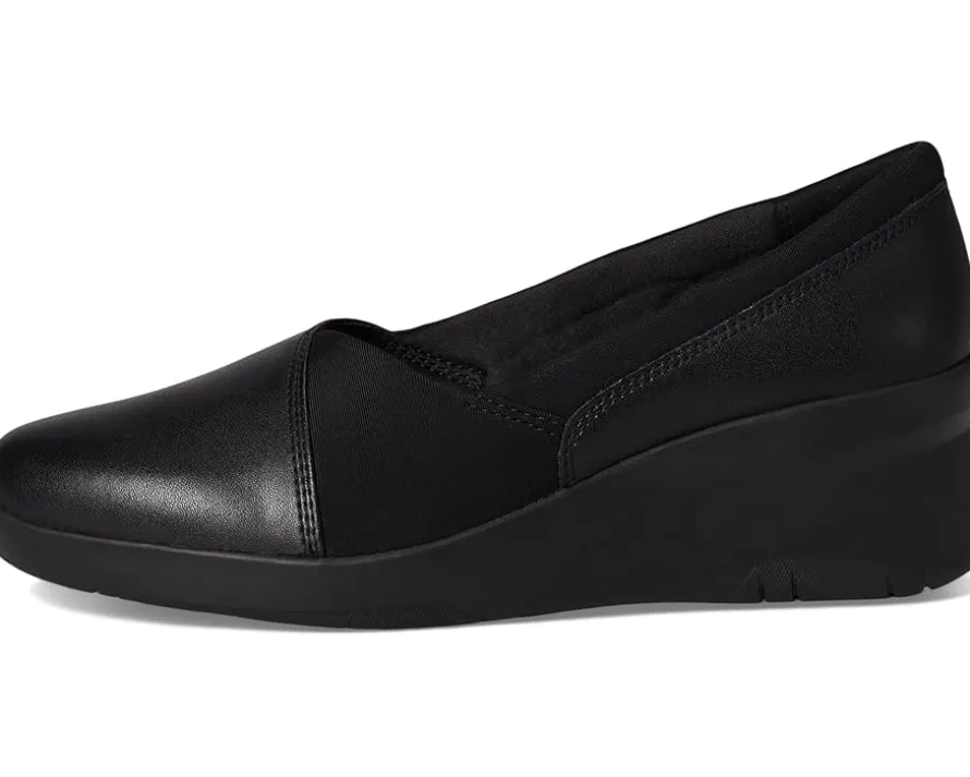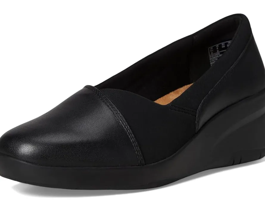 - Perfect for all events, the Clarks™ Suttyn Walk Shoes add both style and comfort to your feet. These slip-on style shoes feature a leather upper with a plain toe shape, mesh lining, and a cushioned leather insole. The wedge heel detail adds style to the look.