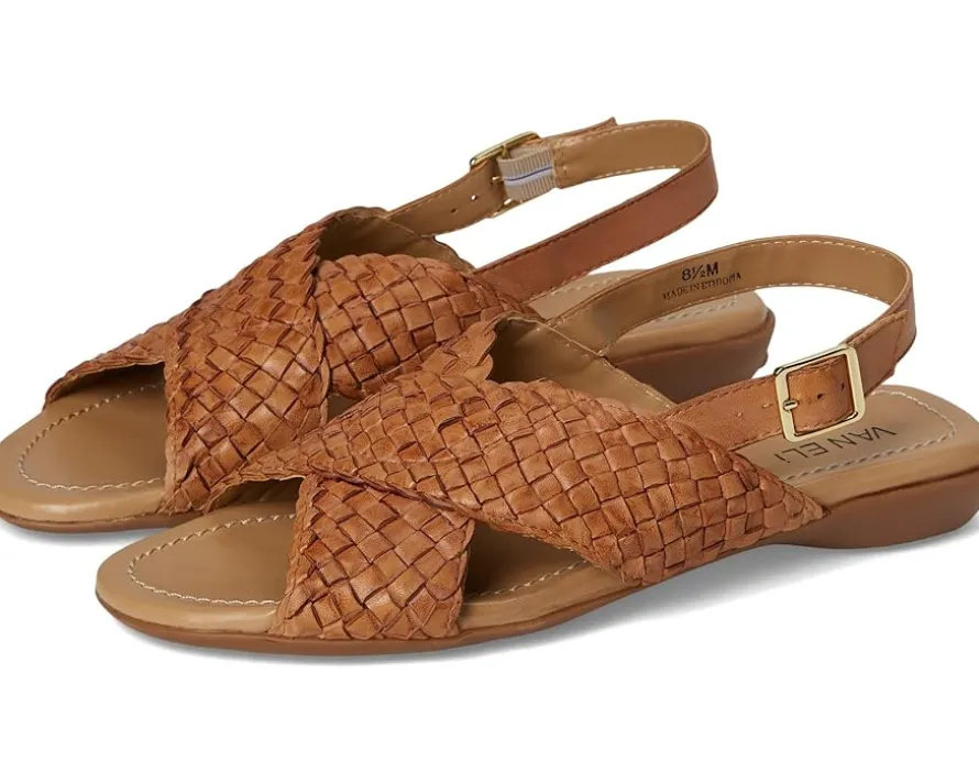 - Featuring a leather braided crisscross strap design, the Vaneli® Tagus flat sandal offers a chic and versatile look. The padded leather insole ensures all-day comfort, while the rubber driving sole provides durability and ease of movement.