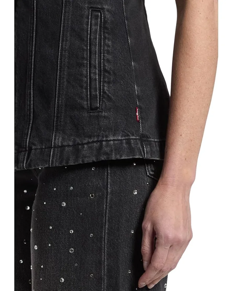 - Meet the Levi’s® Premium Tailored Bustier, your new go-to for bold, flattering style! This ultra-flattering bustier top is designed to accentuate your silhouette with a sleek, slim fit that feels as confident as it looks. Featuring a soft square neckline and a collared, button-front closure, it brings a polished, tailored vibe while keeping things effortlessly chic. Removable straps add versatile styling options, while the sleeveless cut and two flap chest pockets inject a hint of classic Levi’s® attitude.