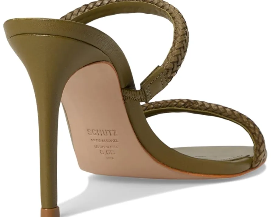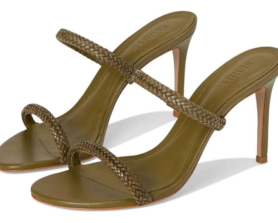 - The Schutz® Taliah Woven is a high stiletto leather sandal featuring a dual band design with woven detail. With an easy slip-on style, the footwear has an open almond toe silhouette.