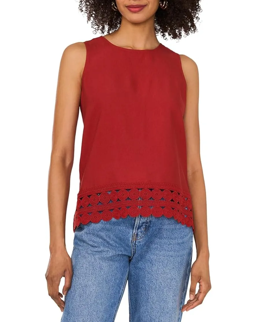 - Look elegant in this beautiful and simple Vince Camuto® Tanks Blouse with Lace Hem.
