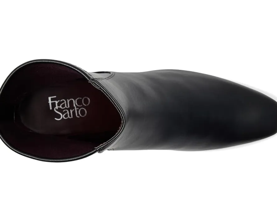 - The Franco Sarto® Tarrin booties are your go-to for a look that’s both timelessly chic and unapologetically modern. Designed with a polished faux leather upper and ankle-high silhouette, these chic booties instantly refine any outfit. The square toe offers a fresh, fashion-forward detail, while the flare heel adds a touch of bold elegance, giving you the perfect balance of height and comfort. A convenient zippered side closure makes slipping in and out effortless, while the PU insole and synthetic rubber outsole provide all-day wearability.