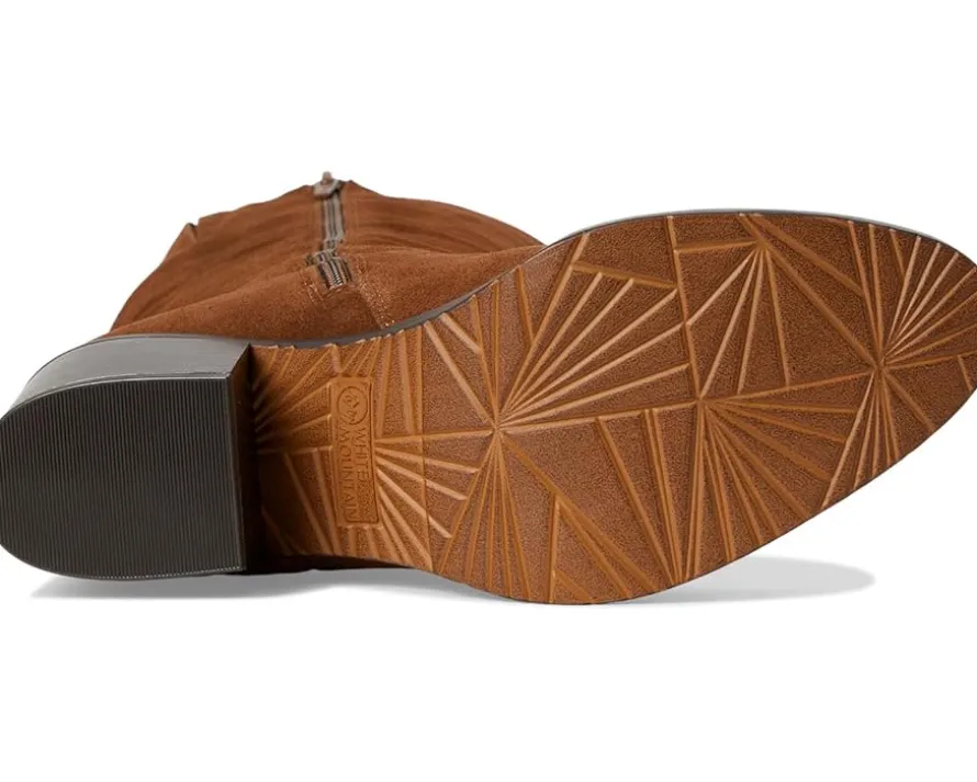 - Own the trail, own your style donning White Mountain® Tater tall shaft boot. Crafted with a sleek leather upper and lined with soft fabric, this knee-high boot exudes sophistication. The almond toe design and wide calf fit ensure a flattering silhouette for all, while the low block heel offers stability and all-day wearability. Slip into the cushioned foam insole for superior comfort, and enjoy the ease of a full inside zipper for quick entry. With a durable PU outsole, the Tater boot is your go-to for chic, effortless elegance on any occasion.