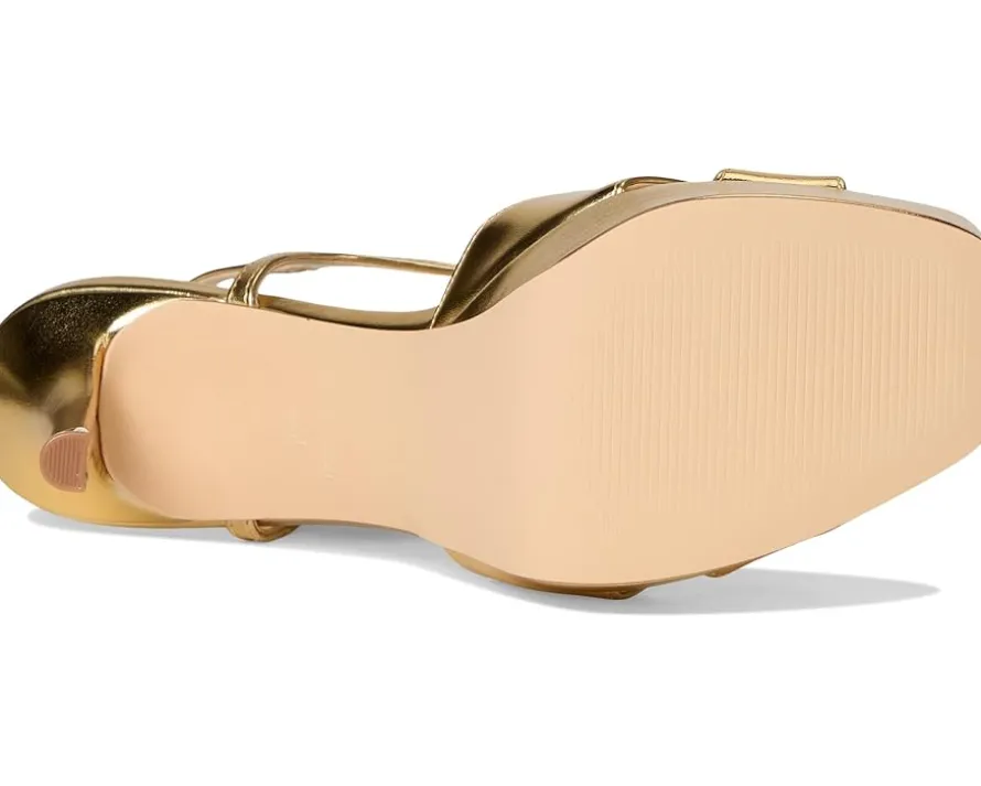 - Fall in love with the Nine West® Tates dress sandals. Featuring an open square toe, high stiletto heel, and criss-cross straps, this sandal is sure to impress and the perfect wardrobe staple! It is crafted with a faux patent leather upper, polyurethane lining, and a cushioned insole.