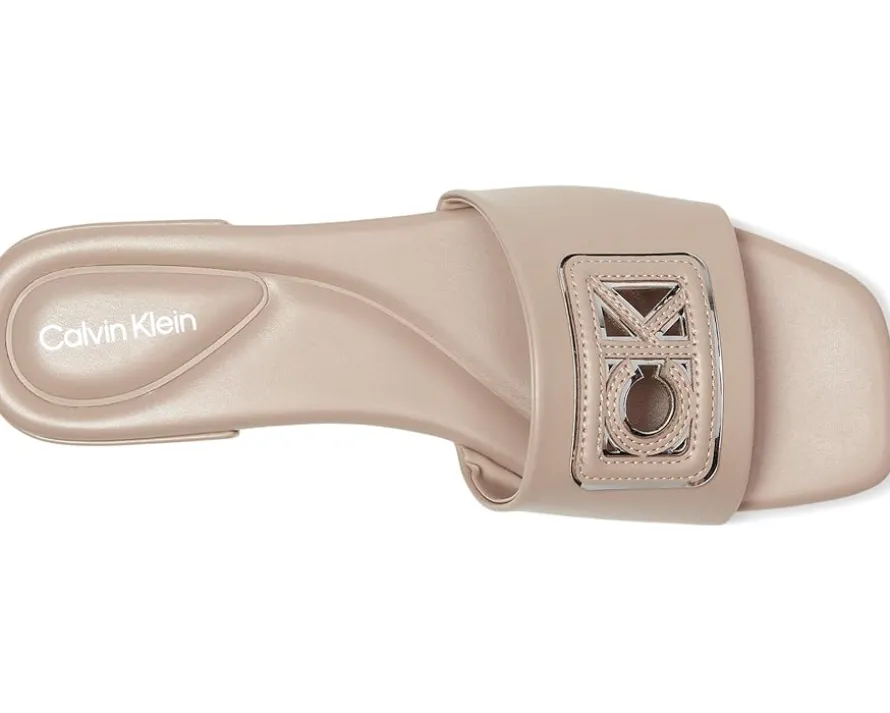 - Chic and stylish, the Calvin Klein® Tavia dress sandals are the perfect wardrobe staple! Featuring a slip-on silhouette, CK logo detailing on the upper and a square toe silhouette, these slip-on sandals are made of a polyurethane upper, foam insole, and polyurethane lining. Match your casual looks and dresses with these heeled sandals.
