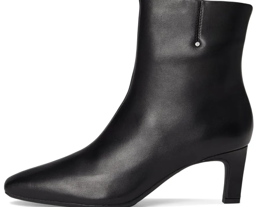 - Move into sleek sophistication styling the Franco Sarto® Tavisha, where modern elegance meets everyday ease. These ankle-high booties are crafted with a luxurious leather and suede upper that exudes refinement, while the pointed toe adds a chic, elongating silhouette perfect for any occasion. The convenient zippered side closure ensures effortless wear, and the petite kitten heel delivers just the right lift without sacrificing comfort. Inside, a cushioned PU insole cradles your feet, while the durable synthetic rubber outsole provides traction for confident strides.