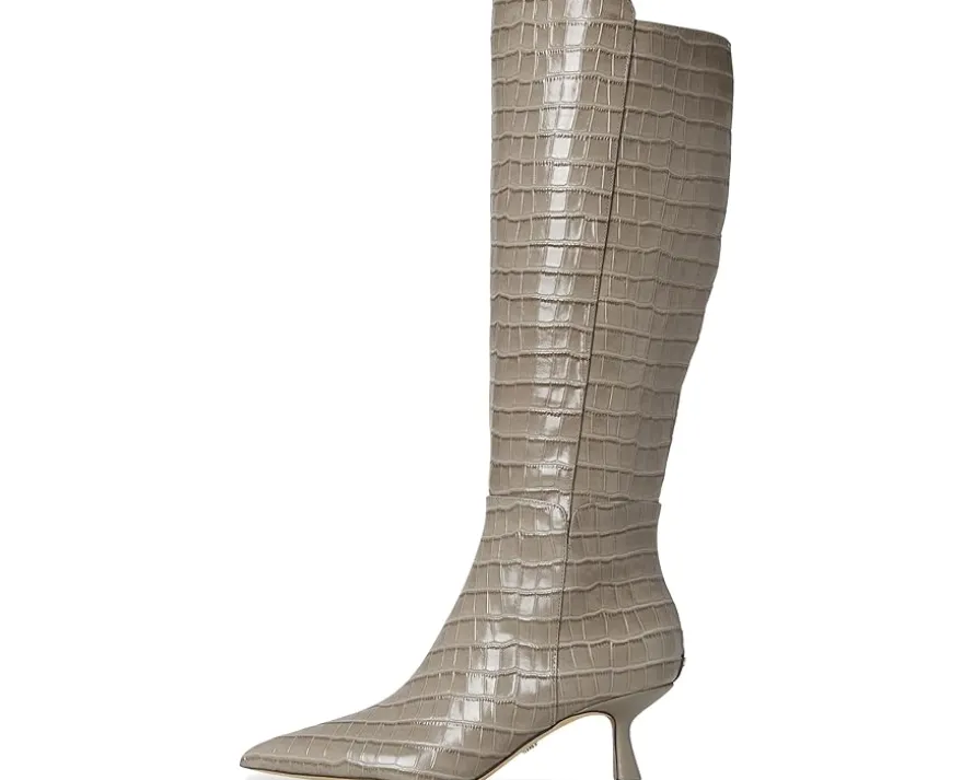 - Meet your new power boot. Sam Edelman® Taylin’s pointed toe and kitten heel deliver a refined profile that’s sleek enough for the office and bold enough for a night out. Made with sleek leather upper and lined with comfortable polyurethane, these mid-calf boots are perfect for all-day wear. Plus, the padded insole ensures your feet stay comfy with every step.