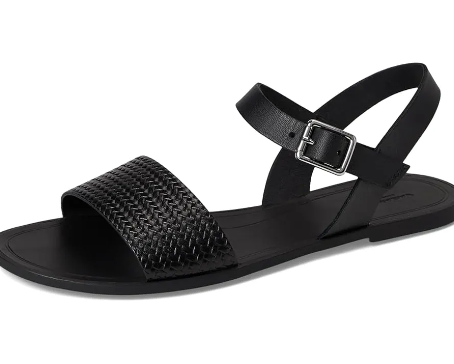 - The Vagabond Shoemakers® Tia 2.0 Woven Sandals are everyday flat sandals with a casual look. The style is crafted in black leather featuring wide woven straps across the upper, an open round toe shape, and an adjustable ankle strap with buckle fastening. These flat sandals are designed with a leather insole and lining, offering superior comfort and durability.