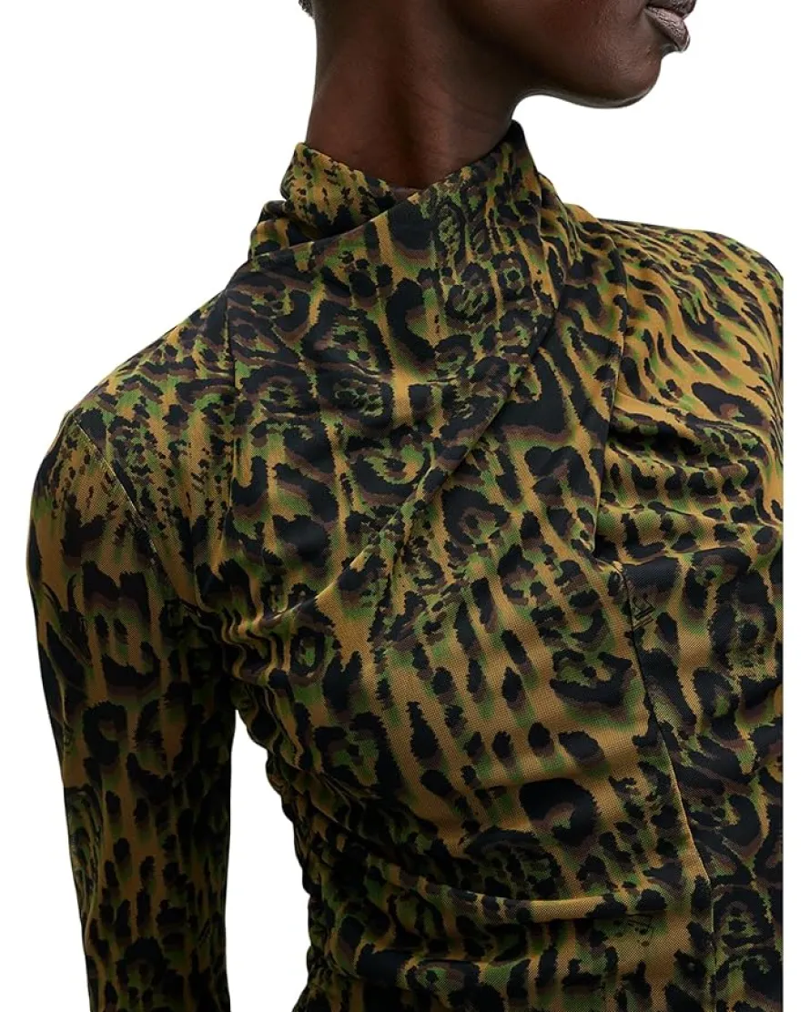 - Become the talk of the party wearing the AllSaints™ Tia Dress. This printed dress is styled with long sleeves, a high neckline, and a straight hem. The polyester blend fabric of the dress provides all-day comfort and allows you to move freely. Stylish and comfortable, this midi dress makes a great addition to your wardrobe.
