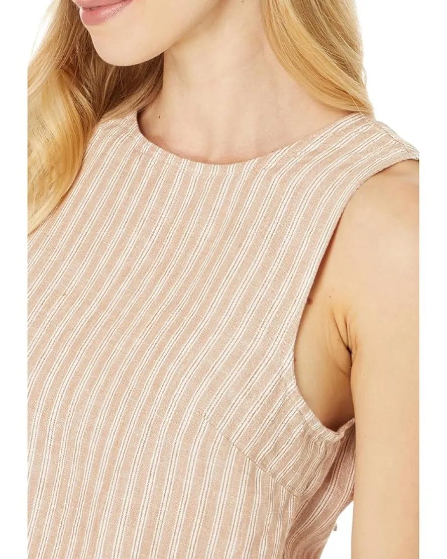 - Chic meets comfort styling Madewell® Tie-Back Scoopneck Top in Striped 100% Linen! Elevate your sunny day’s style effortlessly with its trendy tie-back design and flattering scoop neck. Enjoy the ease of its pull-on style and sleeveless silhouette, perfect for warm days and easy layering. Crafted from premium fabric, it promises breathable comfort and a luxurious feel. The regular fit ensures a flattering look for every body type.