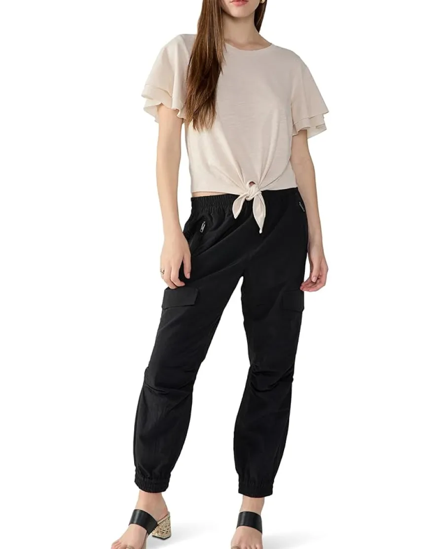 - Want to bring a charming update on your casual style? Then, get your hands on the Sanctuary™ Tied Together Forever Top today! It is fabricated in cotton slub jersey and features a timeless crew neckline coordinated with poplin flutter sleeves for a feminine vibe.