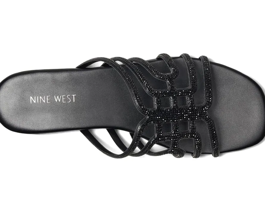 - Complete your look in the Nine West® Timy dress flats. They feature a modern square toe shape, strappy silhouette, and embellishments on the straps. These slide sandals are made of a polyurethane upper, cushioned footbed, and polyurethane lining. These flat sandals are anything but boring and sure to impress.