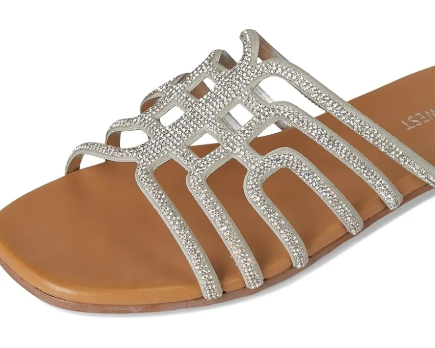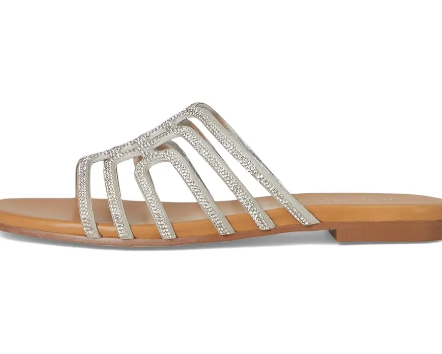 - Complete your look in the Nine West® Timy dress flats. They feature a modern square toe shape, strappy silhouette, and embellishments on the straps. These slide sandals are made of a polyurethane upper, cushioned footbed, and polyurethane lining. These flat sandals are anything but boring and sure to impress.