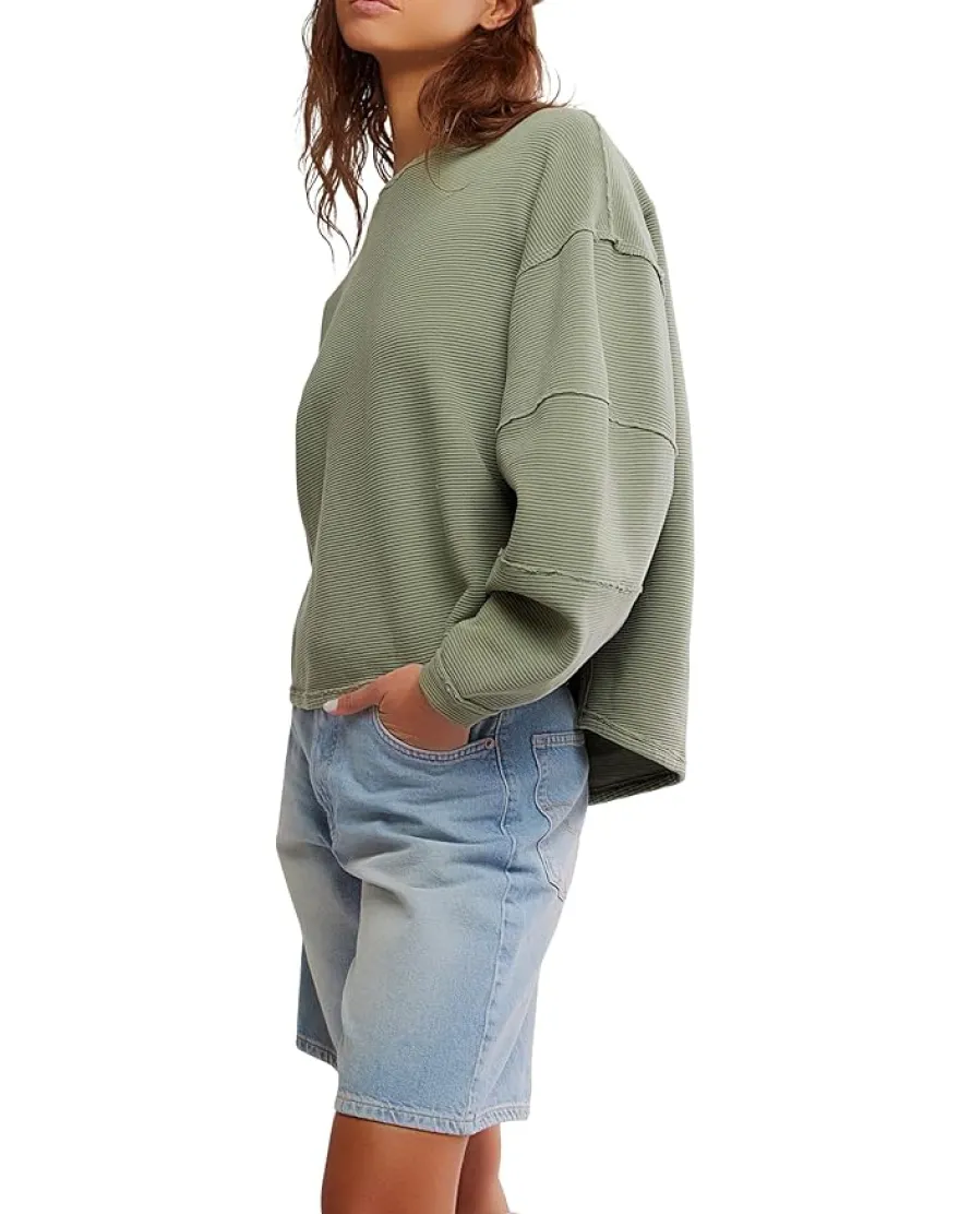 - Get ready to elevate your casual look choosing the Free People™ Total Eclipse Tee. Made from a soft ribbed knit fabrication, this tee features an oversized fit that is both comfortable and chic. The slight scoop neckline and dropped Dolman sleeves add an extra touch of style, while the cuffed hem and raw trim throughout give this tee a unique edge. Perfect for lounging at home or running errands in style, this tee is a must-have for your wardrobe.