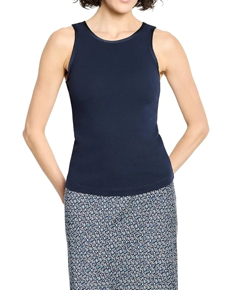 - Elevate your everyday style wearing the NIC+ZOE™ Trimmed Perfect Knit Ribbed Tank. Designed with a flattering round neck and sleek sleeveless cut, this pull-on tank features a luxe 2×2 textured rib that hugs just right. The Day Gloss trim adds a hint of refined shine, giving your look a polished, modern edge whether layered under a blazer or styled solo. With its fitted silhouette and wear-anywhere ease, it brings effortless sophistication to casual days, work meetings, and weekend nights alike.
