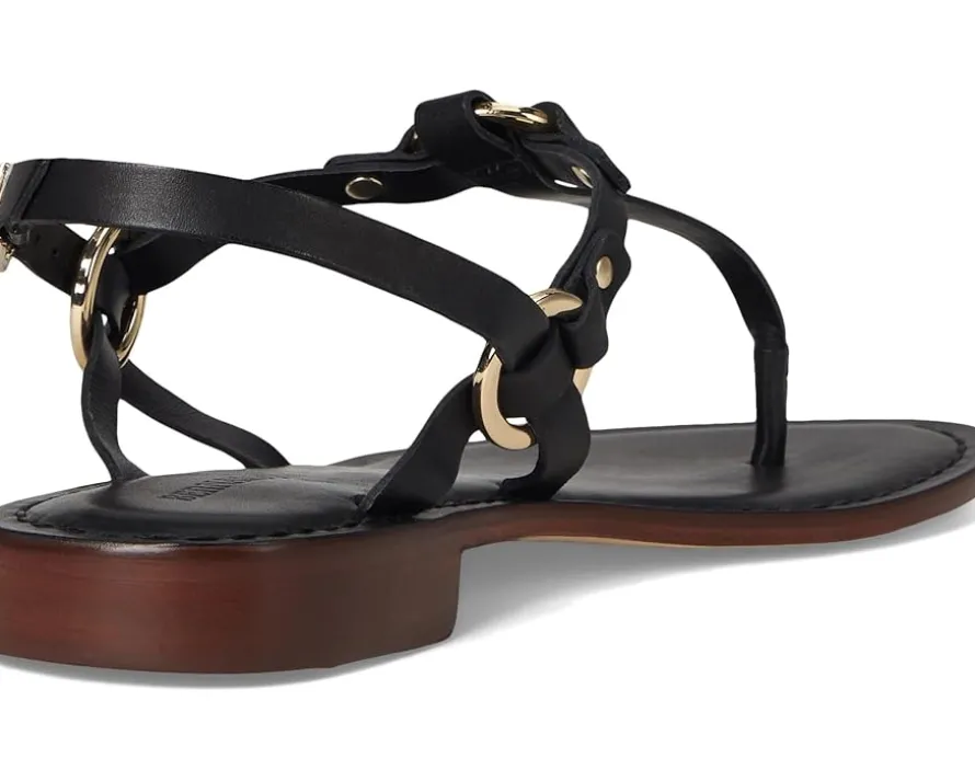 - Exhibit fashion-forward imagination with the Bernardo® Tuni T-strap sandal. Pairing modern leather upper straps with geometric hardware and a covered block heel, it proves that comfort and polish can coexist.