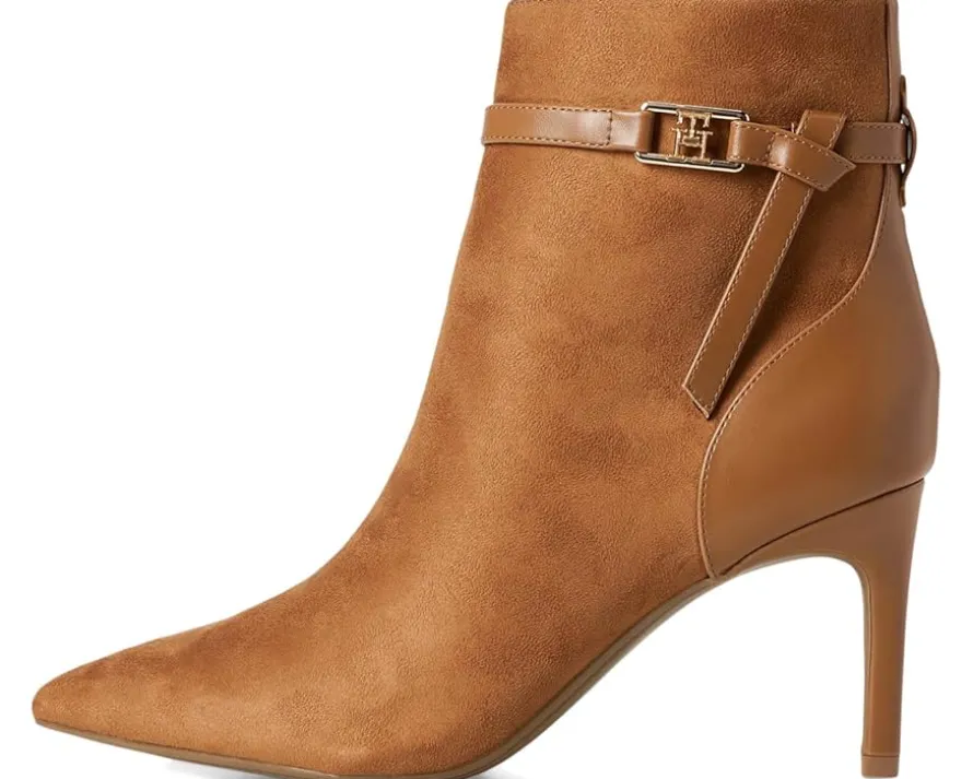 - The Tommy Hilfiger® TWJORINE2-DRE01 with a delicate ankle strap and signature logo hardware emboldens a sleek dress bootie balanced by a pointy toe and tapered heel. These stylish boots feature chic faux suede upper and smooth polyester lining for all-day comfort. With leather insole and trendy stiletto heels, you’ll feel both stylish and supported from day to night. Est. 1985, Tommy Hilfiger is a leading lifestyle brand celebrating the essence of American style.