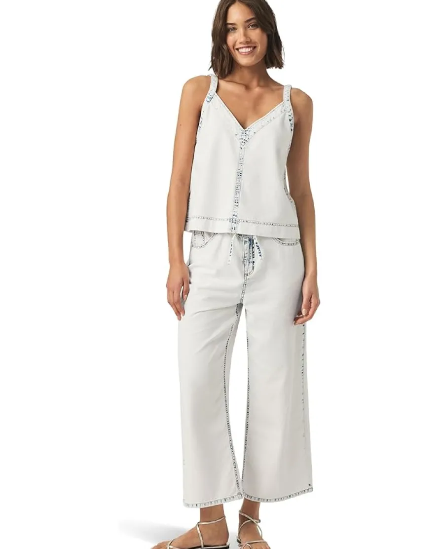 - Make waves in the Splendid® Ultra Bleached Tank, where effortlessly cool meets sun-soaked edge. This ultra bleached indigo dream flaunts a flattering V-neckline and classic fit, perfect for layering or wearing solo. Crafted for comfort with a pull-on style and sleeveless silhouette, it’s your go-to for sun-chasing days and laid-back nights. The standout detail? Straddle stitch accents running along the side seams, front, and center back-adding texture, dimension, and that “worn-in, lived-in, loved-it” vibe.