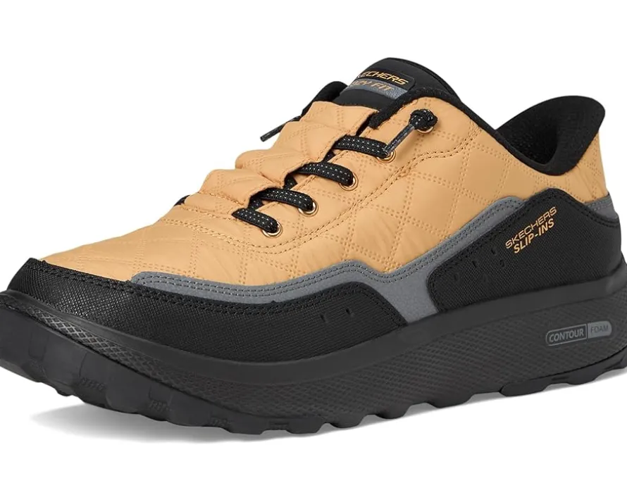 - Sporty and stylish, the SKECHERS® Urban Explore Hands Free Slip-Ins are the perfect companion for your everyday activities. The low-top sneakers feature a synthetic & leather upper with tied-off stretch laces and Skechers® Air-Cooled Memory Foam® cushioned comfort insole. The Skechers® Hands Free Slip-ins for an easy fit allow easy on/off, and the exclusive heel pillow holds your foot securely in place. Plus, the Skechers® branding on the tongue and side panel adds a touch of authenticity.