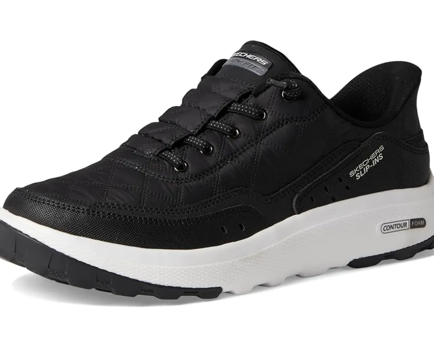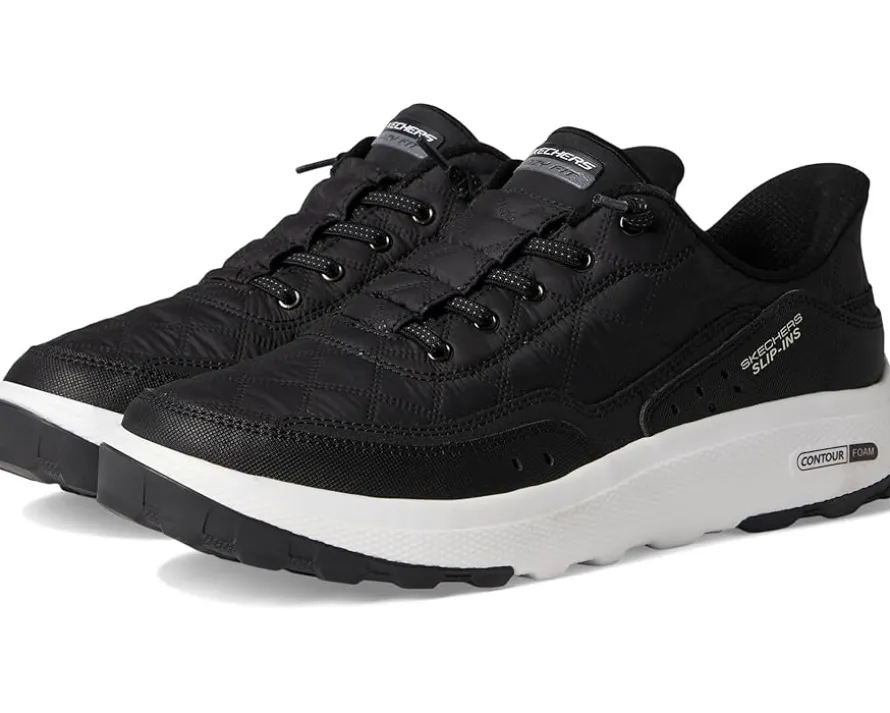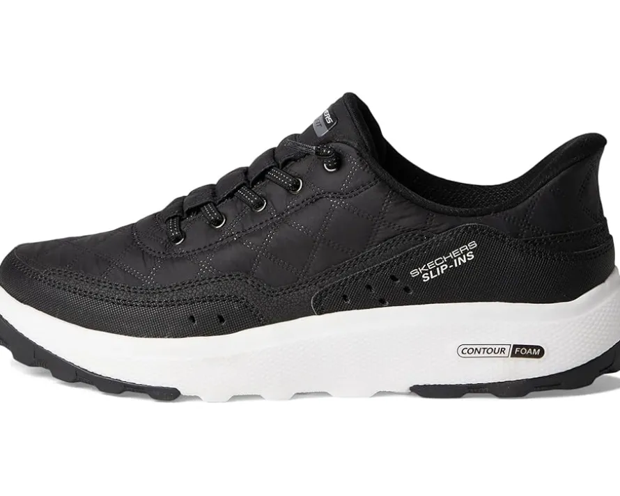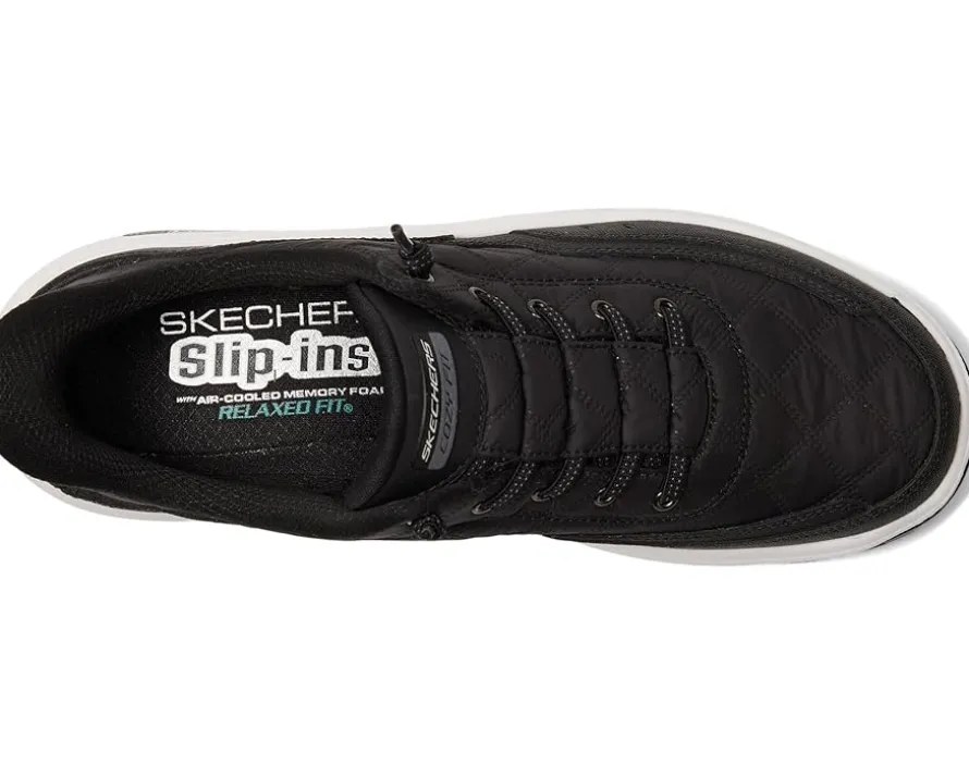 - Sporty and stylish, the SKECHERS® Urban Explore Hands Free Slip-Ins are the perfect companion for your everyday activities. The low-top sneakers feature a synthetic & leather upper with tied-off stretch laces and Skechers® Air-Cooled Memory Foam® cushioned comfort insole. The Skechers® Hands Free Slip-ins for an easy fit allow easy on/off, and the exclusive heel pillow holds your foot securely in place. Plus, the Skechers® branding on the tongue and side panel adds a touch of authenticity.
