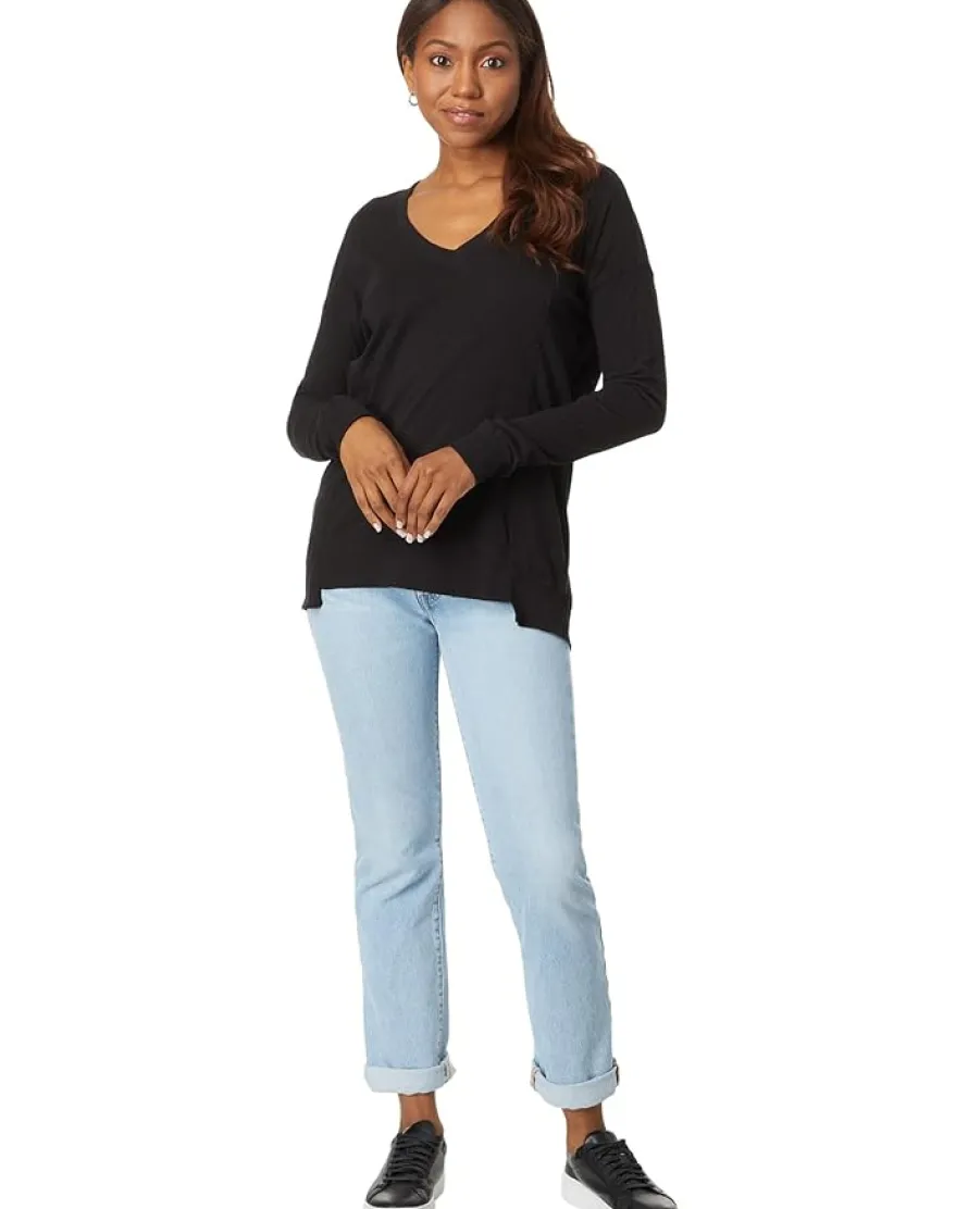 - Elevate your casual look with this effortlessly cool oversized bobi™ Los Angeles V-Neck Long Sleeve Princess Seam Rib Mix Tee.