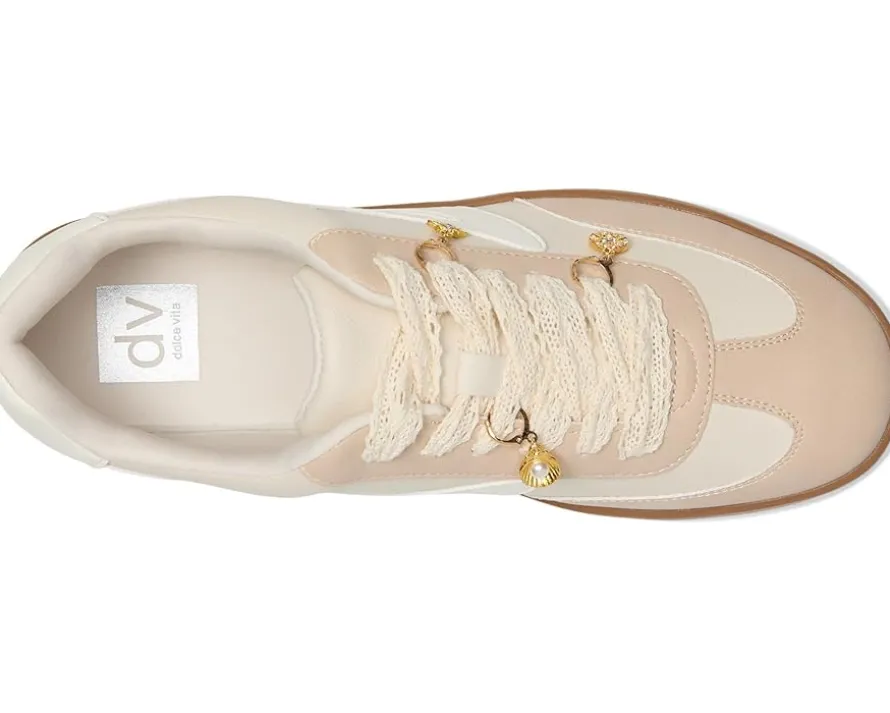 - Go ahead and charm your way through the day styling DV by Dolce Vita® Valentina Charm. These sneakers are the ultimate style statement, blending street-chic vibes with everyday ease. Crafted with a sleek PU upper, matching PU lining, and durable PU outsole, they’re designed to turn heads while keeping you grounded. The cushioned foam insole pampers your feet with soft support, making them perfect for all-day wear-from brunch dates to boardwalk strolls. A classic lace-up closure adds that timeless sporty touch, giving you a snug fit that stays with you from sunrise to sunset.