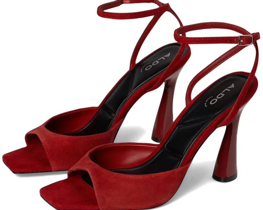 - With its flared heel, sleek ankle strap, and party-ready attitude, this statement-making ALDO® Valentyna dress sandal is ready to party. Inside, the ALDO Pillow Walk™ dual-density foam is added for ultimate comfort. With luxurious suede or crinkled metallic or leather upper, these square-toe sandals deliver both sophistication and sparkle.