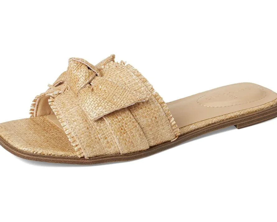 - The Bandolino® Vallen casual flats are your go-to style essential, blending modern flair with effortless wear. Crafted with a sleek PU upper and accented by an elegant bow detail, these sandals bring a feminine twist to any look. The open toe and contemporary square toe design elevate your everyday outfits with a trendy edge. Featuring a slip-on silhouette for easy wear, a soft polyester lining, and cushioned foam insole for all-day comfort, every step feels like a dream. The durable synthetic rubber outsole offers grip and flexibility wherever you go.