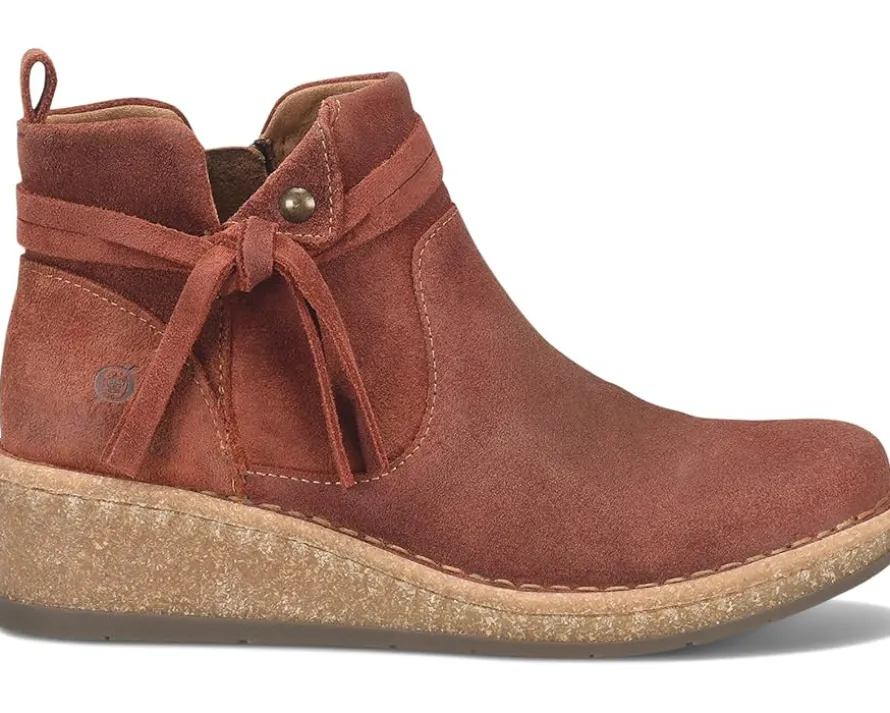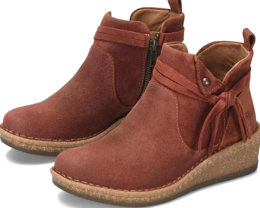 - The Born® Vaughn boots are designed to captivate with their unique details and provide a fashionable lift to your wardrobe. These boots feature Opanka hand-crafted construction that offers durability while the zippered side closure ensures easy on and off. The hand-finished distressed suede leather upper of these boots comes with a heel pull loop. These leather boots are crafted with a breathable soft fabric suede lining and soft fabric suede-covered footbed with extra foam for added comfort. Make a fashionable entry wherever you go wearing these zippered boots.