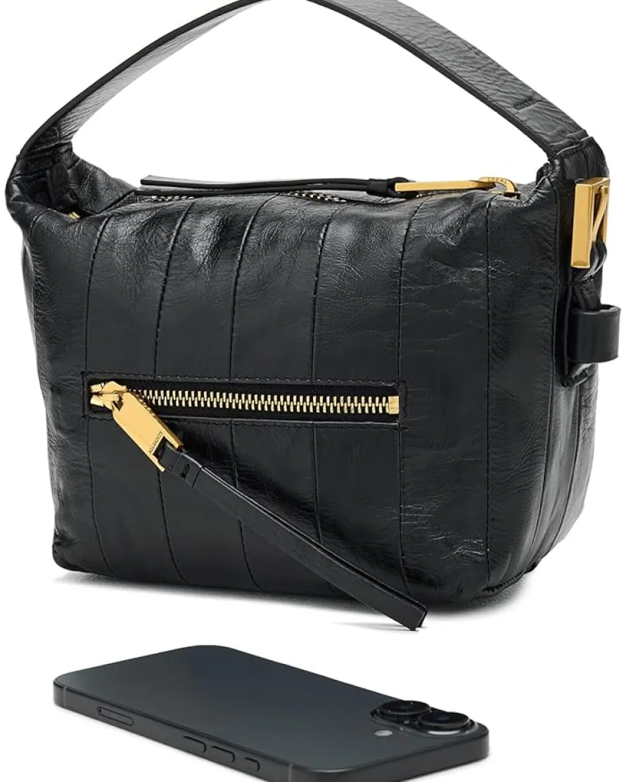 - Meet the AllSaints™ Vega Panel Grab Bag, a structured, modern essential that makes an instant statement. Crafted from premium cow leather for a luxe, long-lasting finish. Designed in a refined baguette silhouette, this shoulder bag blends minimalism with downtown edge, making it the perfect companion from daytime errands to evening plans. Its streamlined interior features one spacious compartment and an additional pocket, giving you just the right amount of organization without the bulk. The secure zipper closure keeps your essentials protected, while the structured panel design adds a fashion-forward touch.