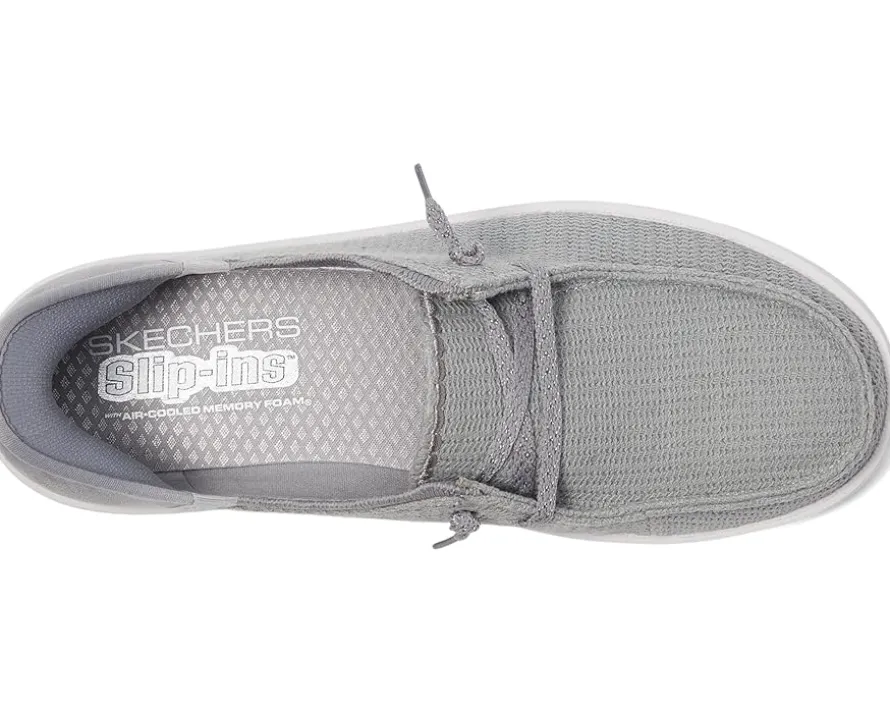 - Designed to offer utmost comfort, the SKECHERS® Venice – Coastal Groove Hands Free Slip-Ins shoes are a must-have in your wardrobe. The slip-on style shoes have a round-toe design, lace-up closure for a custom fit, and a breathable construction. The low-top shoes have recycled knit upper, breathable fabric lining, air cooled memory foam footbed, and shock-absorbing midsole for extra comfort.