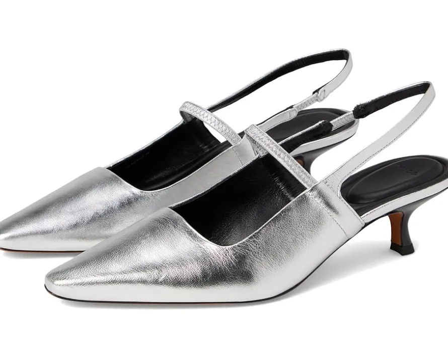 - Atop sleek kitten heels, the Vince® Venice Kitten Slingbacks are finished with elasticized straps to hug the foot. The leather upper and lining are responsibly sourced from Leather Working Group-certified tanneries. These heeled sandals are made of a leather insole for added durability. Easy to slip on and off, add a chic look to your outfits and styles with these leather pumps.
